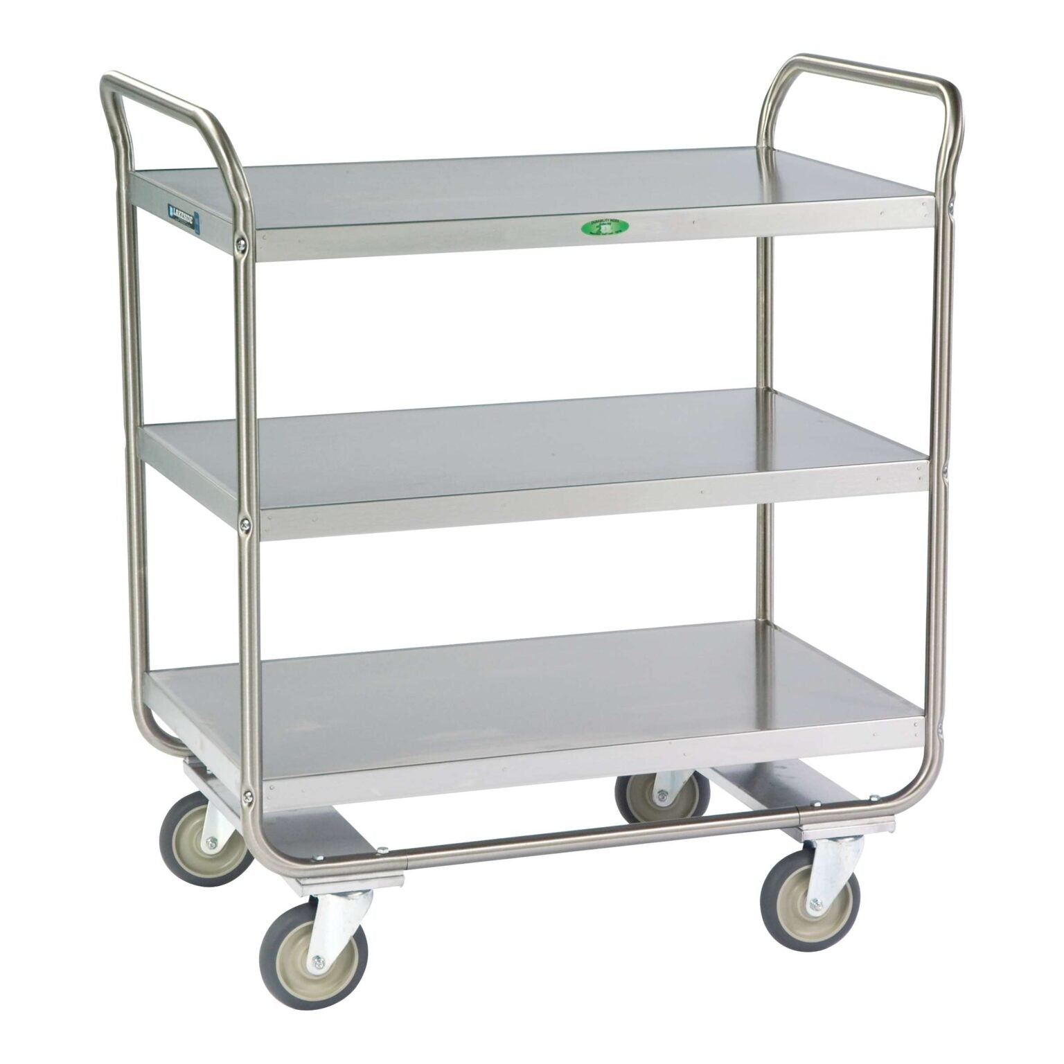 - 20-gauge stainless steel shelves have reinforced edges for heavy loads and load drops. Legs are 16 gauge stainless steel.