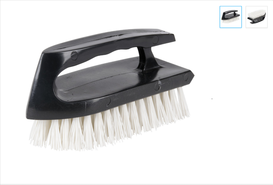 Reach every crevice with this easy to hold handle scrub brush with poly bristles. Ideal for any environment where sanitary conditions are required, its compact, 5 1/2" x 2" base makes it both sturdy and easy to manage in tight spaces, giving you increased scrubbing power to tackle even your toughest cleaning jobs. The ergonomic handle is designed to be as comfortable to grip as it is stable and reliable, but the quality and strength of this scrub brush don't just come from its hard plastic construction. The 1" long bristles, made of crimped polypropylene, are long-lasting and versatile enough for any application. This conveniently sized, small but mighty brush stands up to any mess, and storage is a breeze when the job is done. Overall Dimensions: Length: 5 1/2" Width: 2" Bristle Trim: 1"