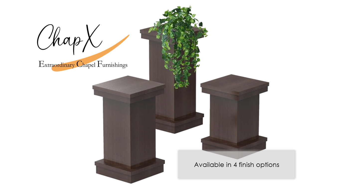 Extraordinary chapel furnishings for today's funeral spaces. ChapX Laminate Flower Pedestal's are sold in pairs of the same size. Each has an anti-tip weighted base and is finished in a luxury laminate. Highly durable, water resistant and scratch resistant. Made to withstand the use in today's funeral environments. Available in your choice of 4 colors and 3 sizes. Made in the USA. This product has extra lead-time. 2 per set.