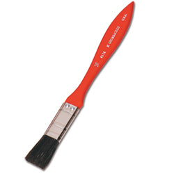 Dark ox hair. Ideal for the application of cream or liquid base cosmetics and as stippling brushes to achieve natural tissue textures and pore-consistencies on waxes and applied cosmetics. 1/ea.