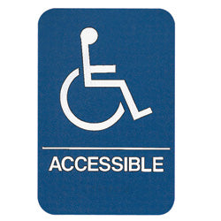 Sign fulfills the ADA requirement sand meets the criteria for grade 2 braille. Raised lettering, character proportion and height, finish and contrast rules. Self-Adhesive strips that are included. Blue background with white lettering. 6"W x 9"H. 1/ea.