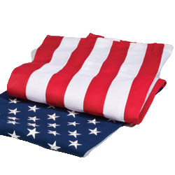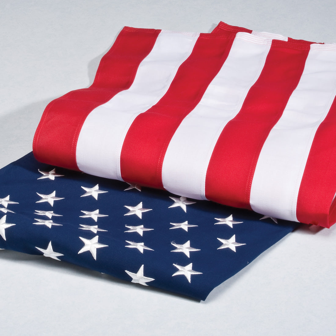 2-Ply spun polyester flags come with extra heavy, white polyester canvas heading with nylon rope and galvanized thimbles for added strength. Flags come with sewn strips and embroidered stars.