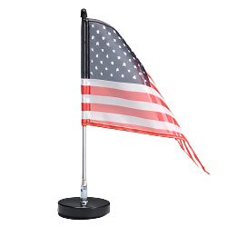 Set includes staff with single magnetic base and polyester American flag. Flag: 9"W" x 6"H. 1/set.
