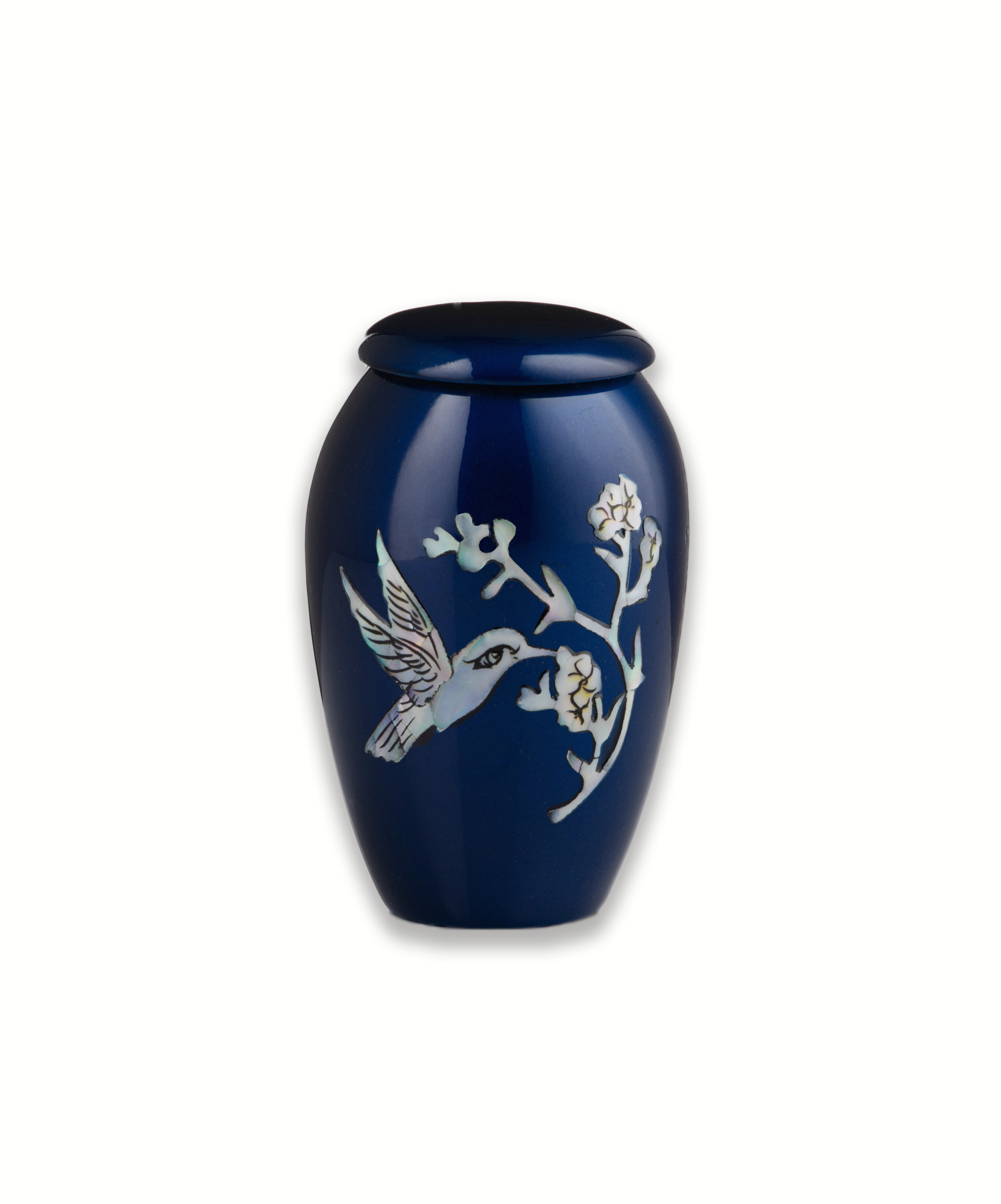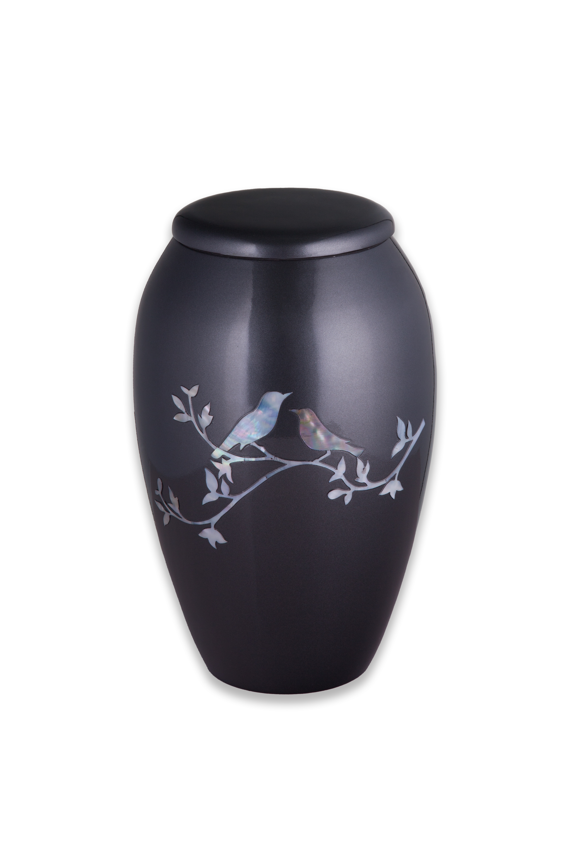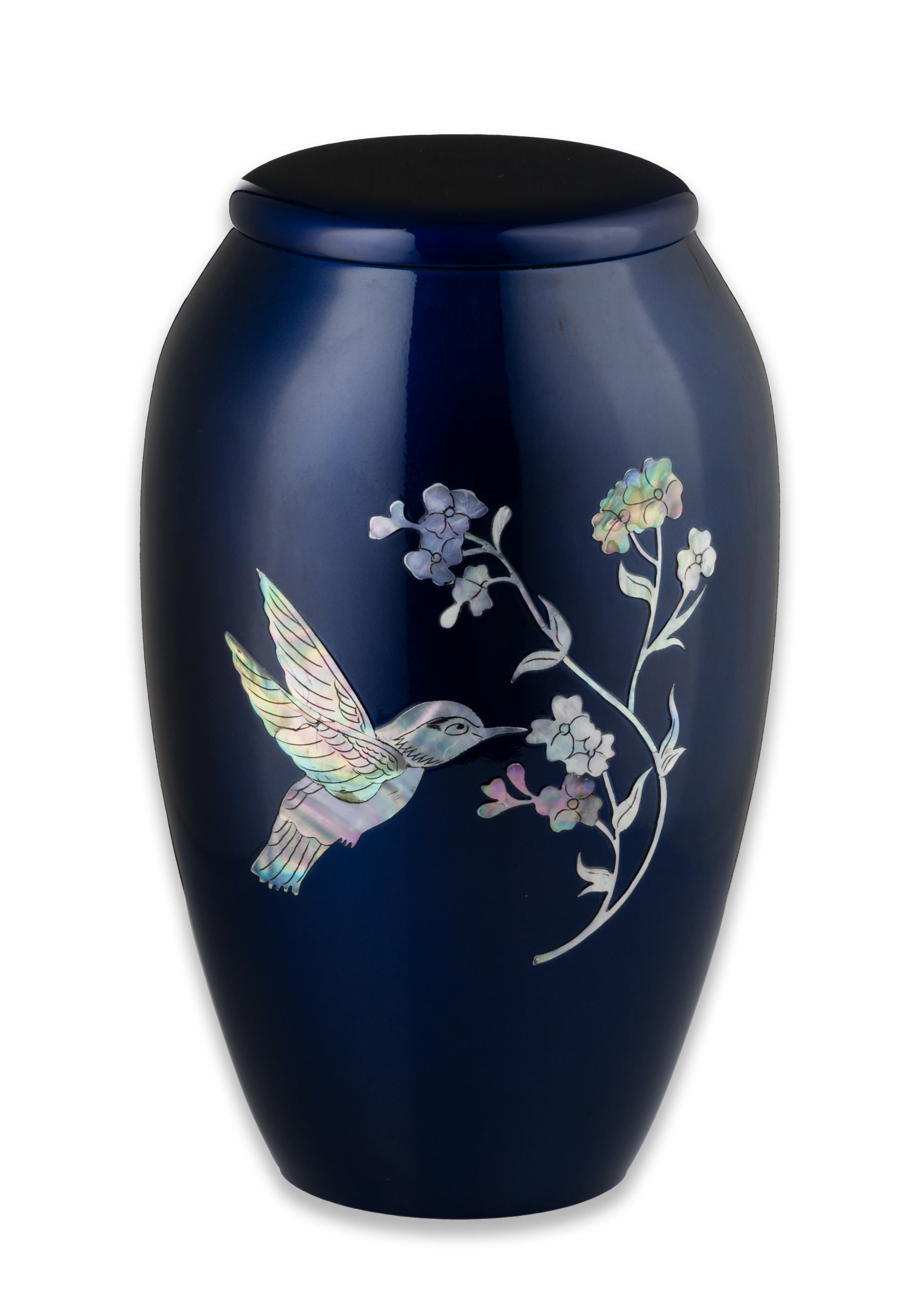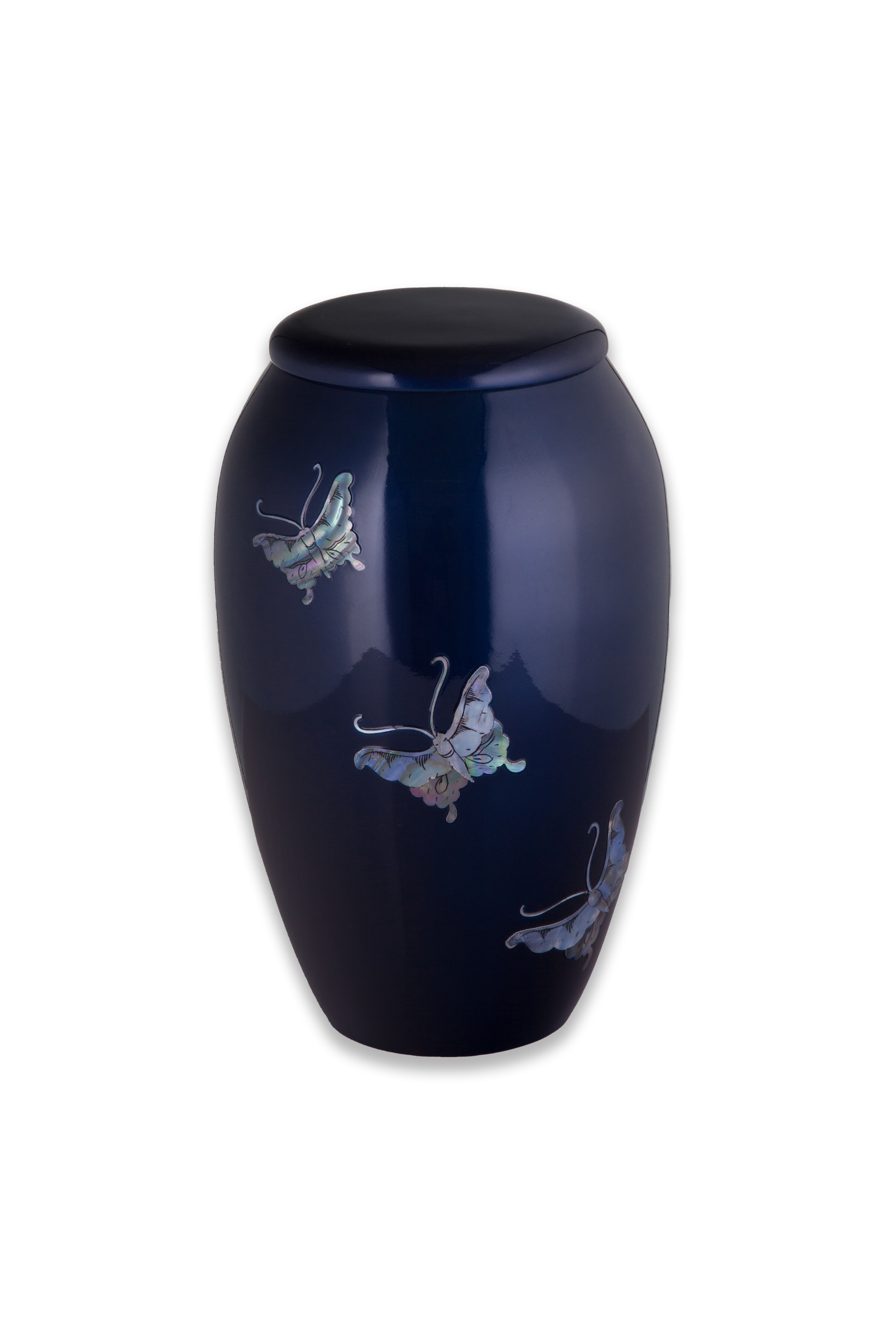 Mother of Pearl inlay urns are beautifully crafted keepsakes that combine elegance with timeless craftsmanship. These urns are meticulously adorned with lustrous Mother of Pearl, a shimmering material derived from the inner layer of mollusk shells. The iridescent hues of the Mother of Pearl create an ethereal, glowing effect, often arranged in intricate patterns or designs that vary from classic floral motifs to abstract art.
