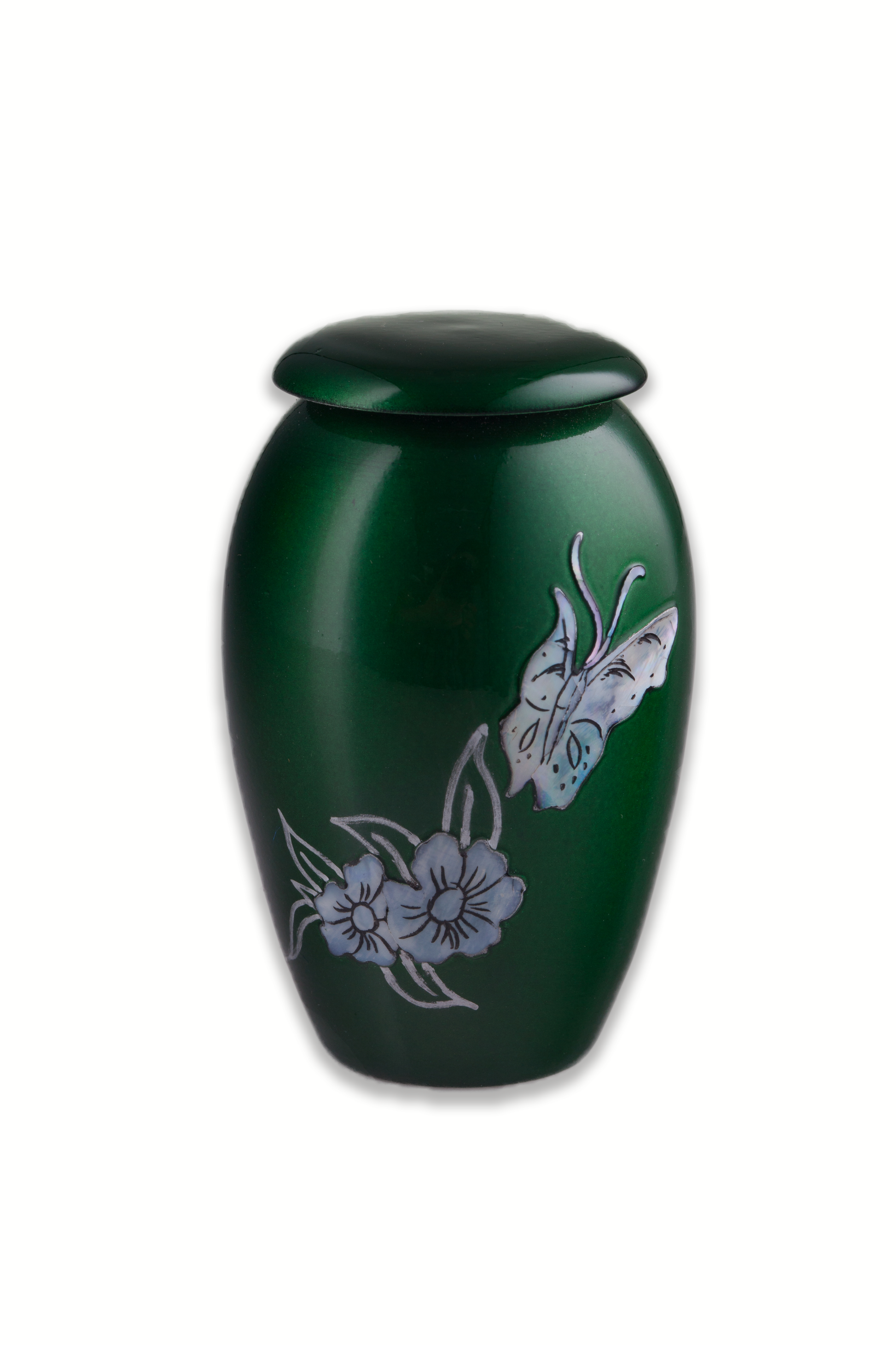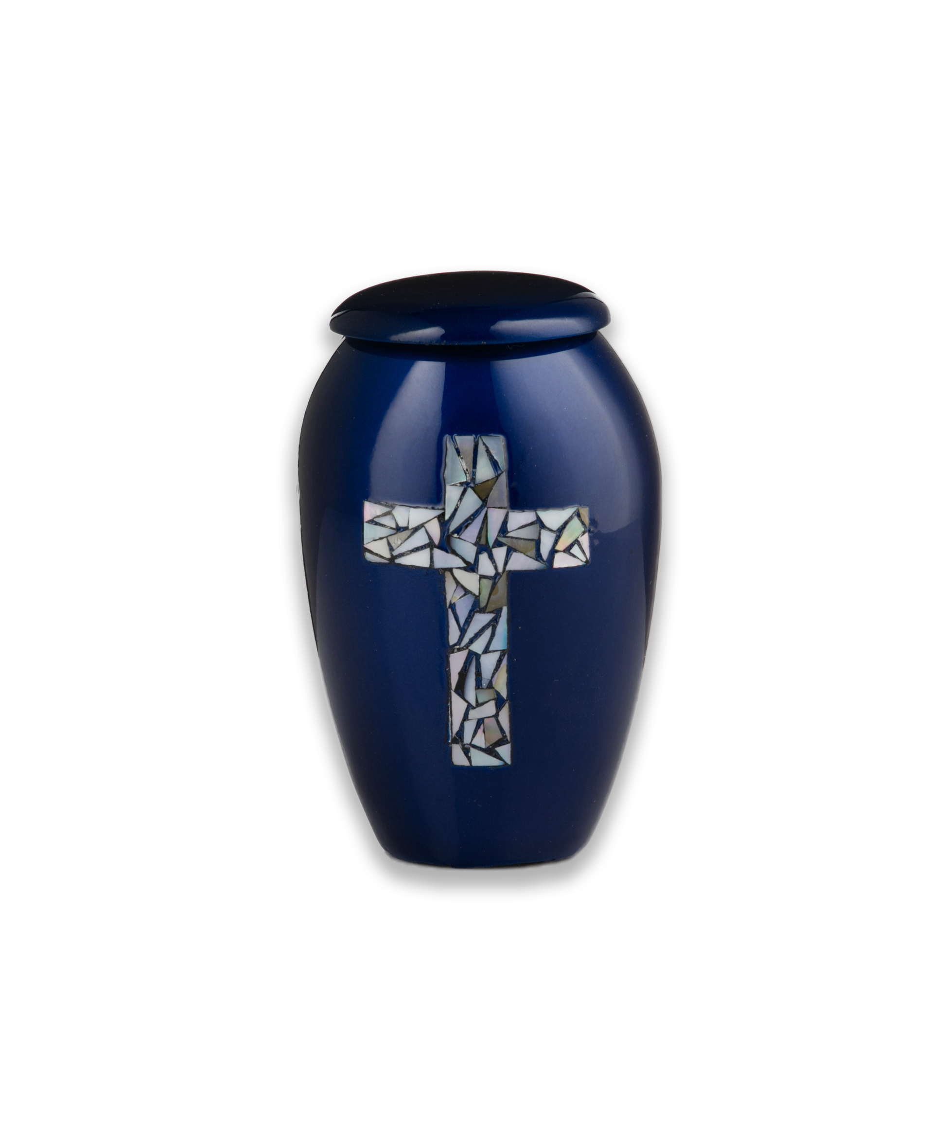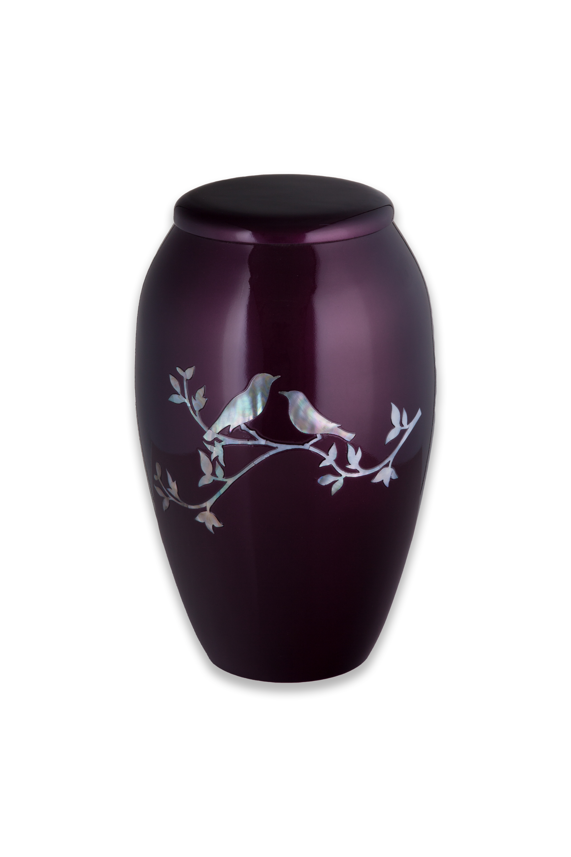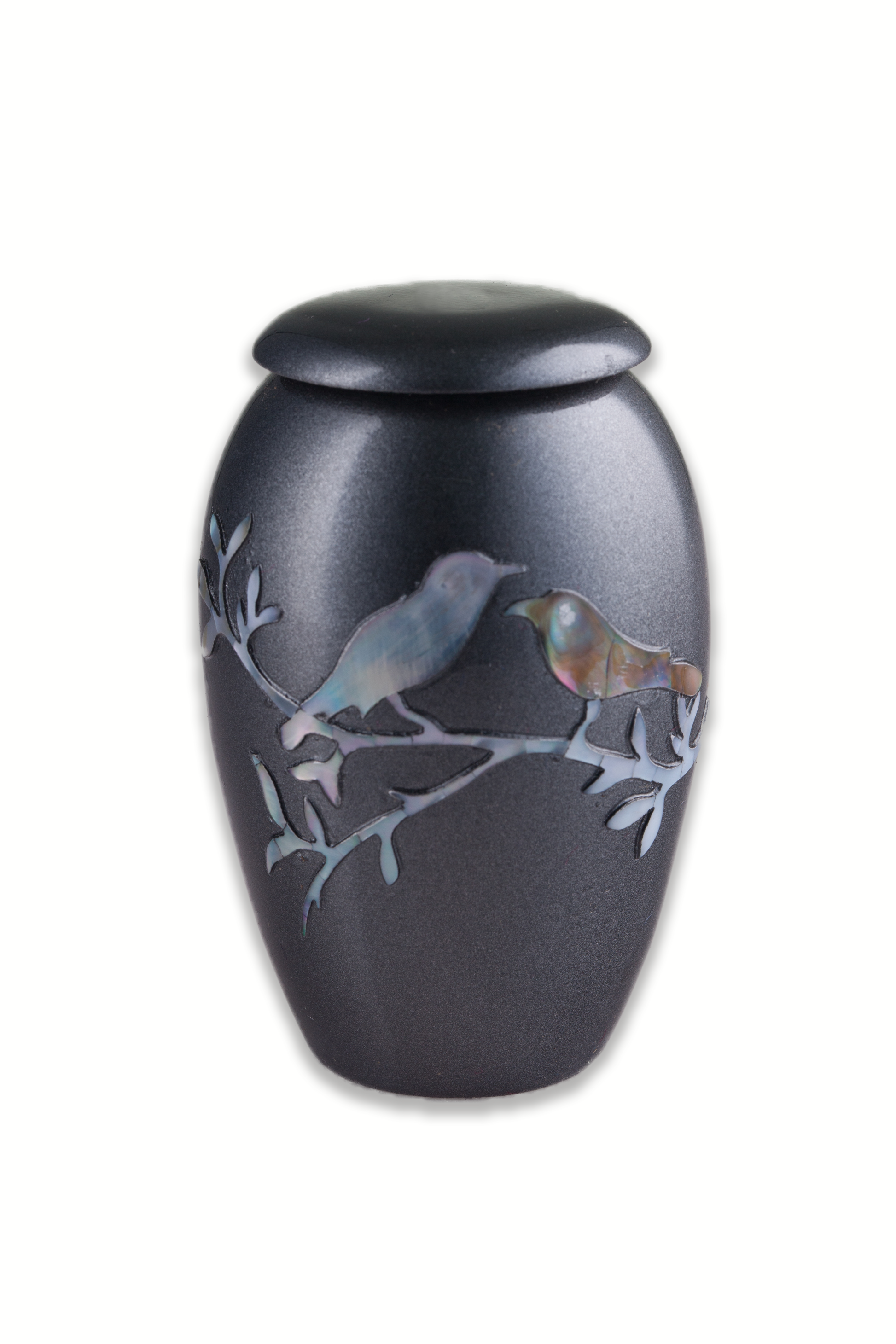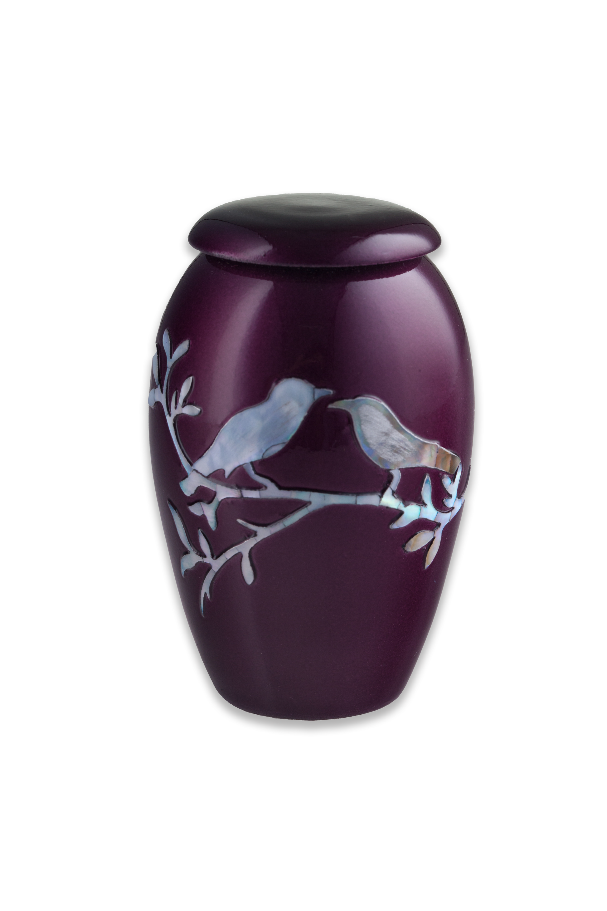 Mother of Pearl inlay urns are beautifully crafted keepsakes that combine elegance with timeless craftsmanship. These urns are meticulously adorned with lustrous Mother of Pearl, a shimmering material derived from the inner layer of mollusk shells. The iridescent hues of the Mother of Pearl create an ethereal, glowing effect, often arranged in intricate patterns or designs that vary from classic floral motifs to abstract art.