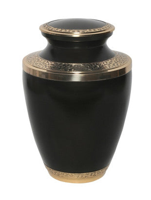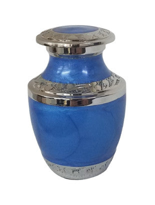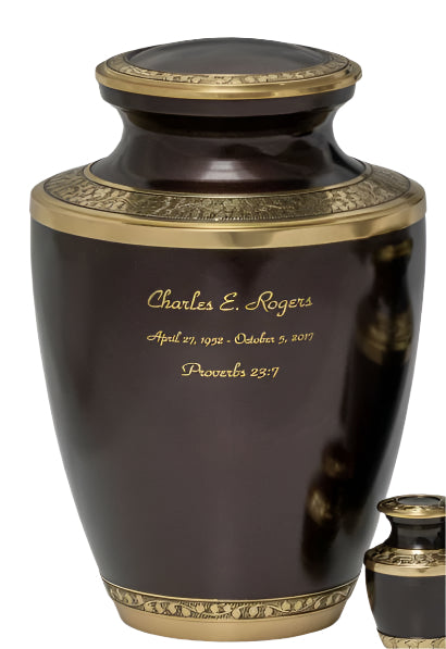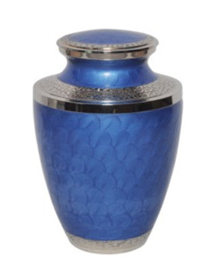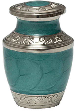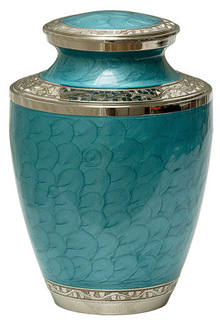 These beautifully crafted adult-sized urn combines the strength of brass with the elegance of silver and colored accents.