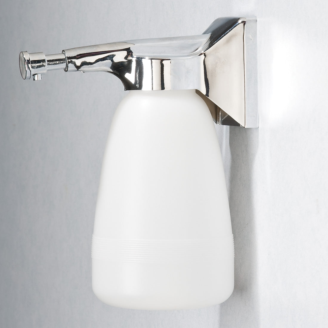 Dispenses liquid soaps, lotions and antiseptic solutions. Chrome plated brass bracket; internal valve parts are stainless steel and plastic; reservoir is polyethylene. Mounting hardware is included. 1/ea.