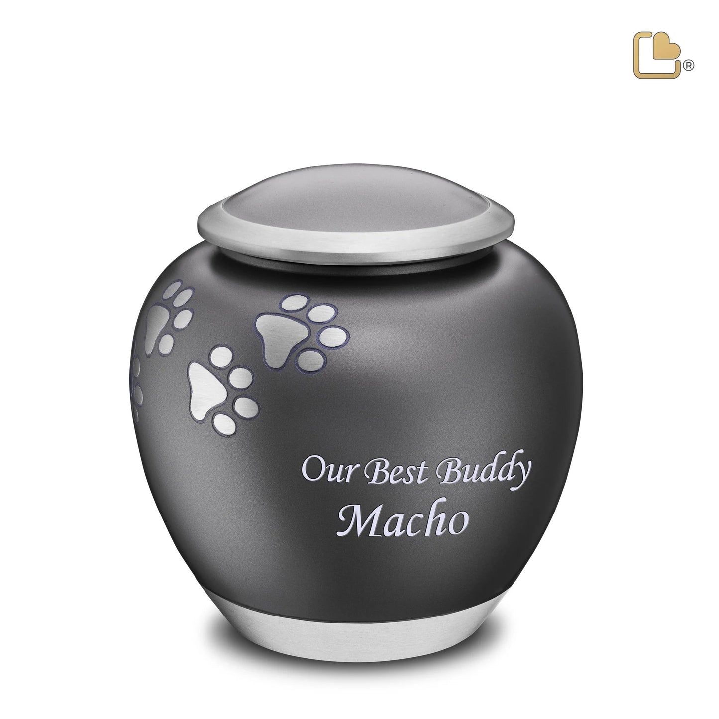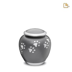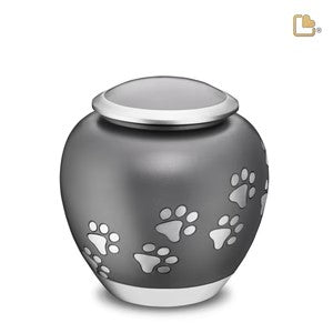 Honor your cherished pet with the elegant Large Pawprint Pet Urn in French Grey and Brushed Pewter. This thoughtfully designed urn provides a dignified and stylish resting place for your beloved companion.
