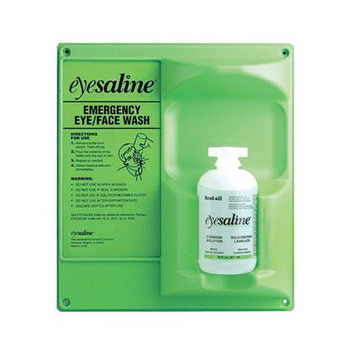 Single use eyewash station is intended only as supplemental units for secondary protection. Provides immediate flushing until the injured person can be helped to a primary emergency eyewash device. Stations mount easily to wall with peel-off, self-adhesive tape or screws (both included). Bottle twist-off tops easily removed in an emergency, no seals to remove, no leaking caps, small opening to provide extended flow.