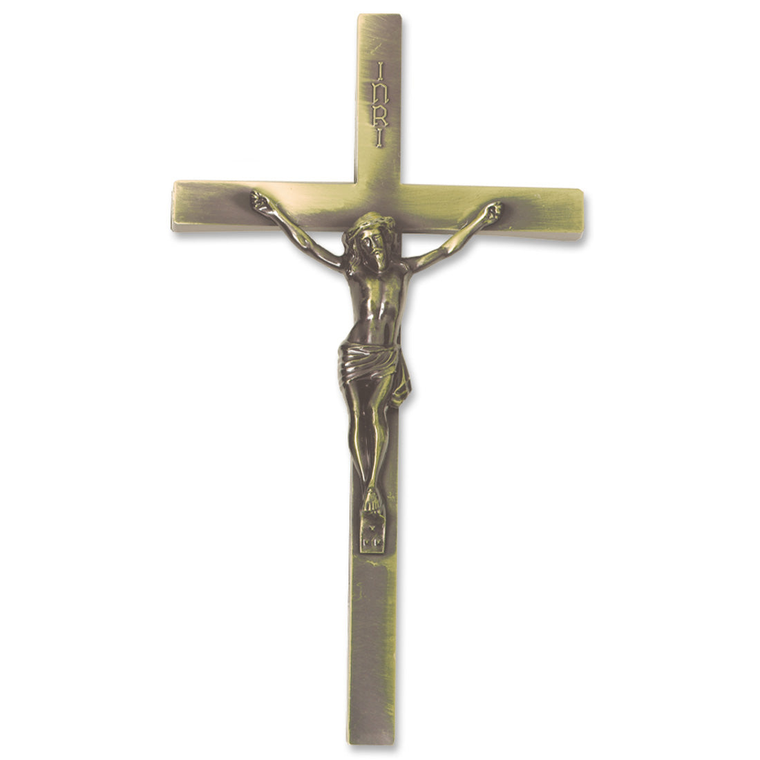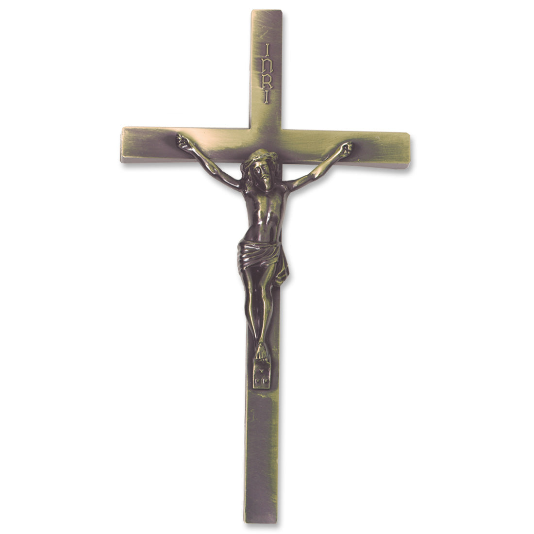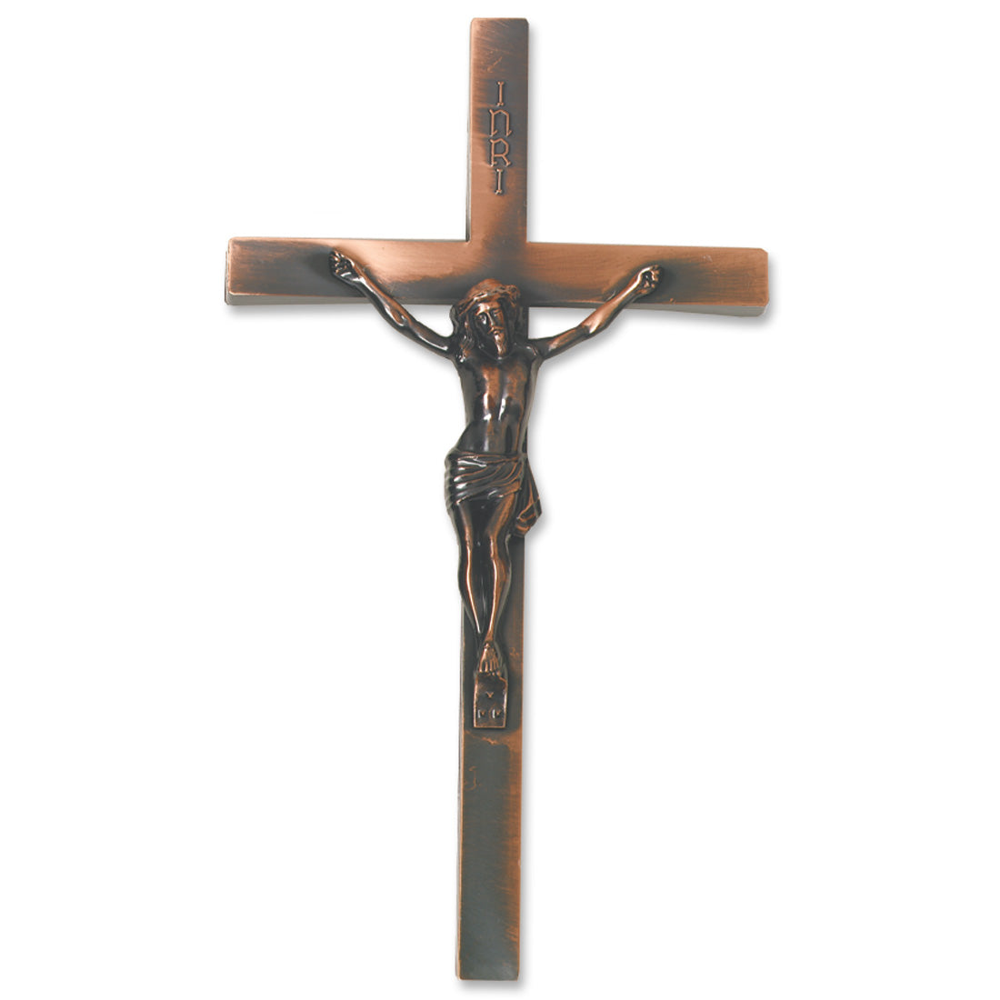 Add a touch of grace and reverence to any casket with our Slimline Casket Crucifix. Meticulously machine die-cast and electroplated, this crucifix combines durability with a sophisticated finish. The curved back is designed to fit seamlessly against the contours of the casket lid, ensuring a refined and elegant look. Easy to attach with pressure-sensitive tape, it is available in four distinguished finishes: Bronze, Antique Copper, Antique Silver, and Antique Brass. Each crucifix comes individually boxed for optimal protection and presentation. 14"H x 7-1/2"W.