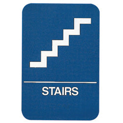 Sign fulfills the ADA requirement sand meets the criteria for grade 2 braille. Raised lettering, character proportion and height, finish and contrast rules. Self-Adhesive strips that are included. Blue background with white lettering. 6"W x 9"H. 1/ea.