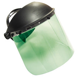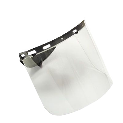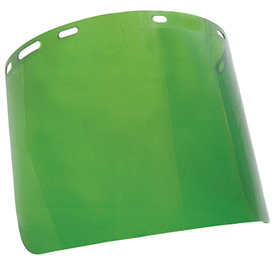 Shields feature a high-impact polycarbonate lens, 8 in. W x 15.5 in. L, 0.06 in. thickness, pre-injected curved lens, with a locking adjustable headpiece.