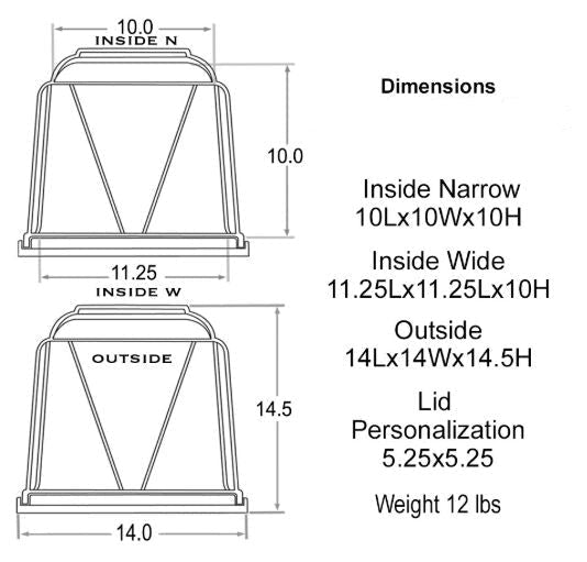 The Standard Medium Urn Vault is engineered using a deep right-angle "V" shape structure on all four side-walls and wide rounded exterior corners.