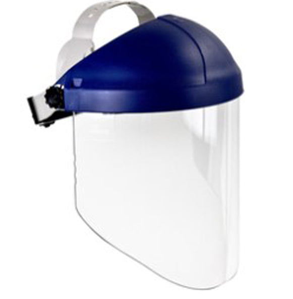 Full face splash protection. 3M deluxe high-strength thermoplastic offers heat application and good chemical face protection. Ratchet head size adjustment for a snug fit. Shield size: 9"W x 14-1/2"L.
