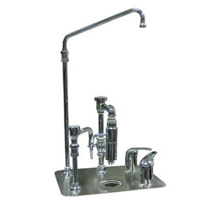 The entire unit is pre-assembled and pre plumbed for easy installation. Simply drop into the cutout in your countertop and connect the utility lines. The tall faucet is designed for your embalming machine to fit under the spout. By using the master mixing valve, you can supply the desired temperature to the tank of your machine. The spout is easily turned out of the way when not in use. Easy control of water temperature. A serrated attachment is provided for quick connection of rinse hose. A constant flow of water can be supplied to the embalming table for cleaning or procedure purpose. The rinse is vacuum breaker protected for back-flow prevention. Rinse hose included. Features a hydro-aspirator assembly with built-in vacuum breaker prevents contamination of your water supply. The clear sight drain also prevents contamination since the air gap will not allow aspirated material back into the aspirator assembly. A valve is provided to control water supply to the aspirator assembly. Included 10' aspirator hose & 5" draw hose.