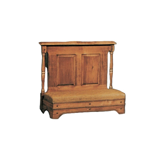 Features a grained panel with turned spindles on either side.