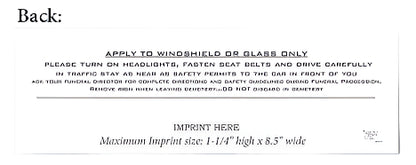 Funeral Directors: Imprint can be attractively displayed on the back - in a 1.25" H x 8.5" W area.